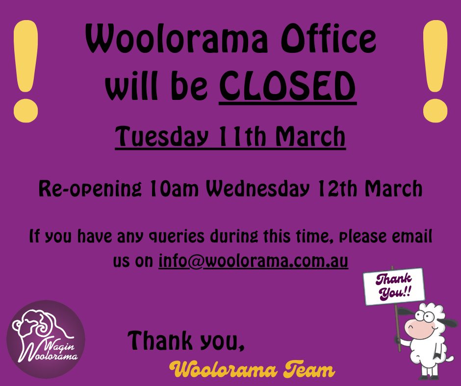 Wagin Woolorama Office Open from 9.30am to 4pm Tuesday, Wednesday & Thursday.