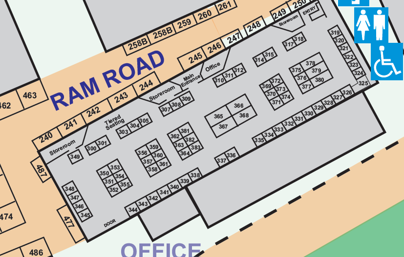 - Due to the Pavilions airconditioning, there are strictly no roofs allowed on site displays